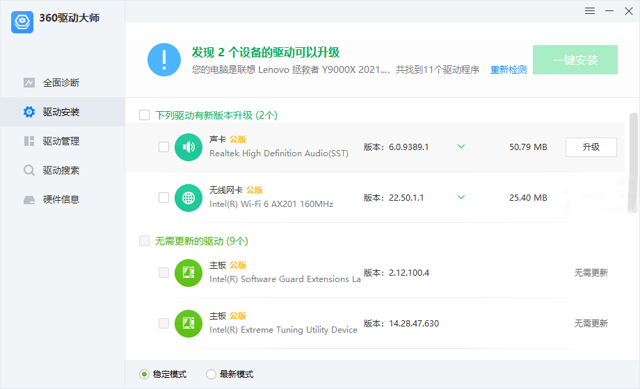 7. 360驅(qū)動(dòng)大師網(wǎng)卡版支持一鍵安裝驅(qū)動(dòng)程序,用戶無需手動(dòng)操作,只需點(diǎn)擊幾下即可完成驅(qū)動(dòng)安裝。