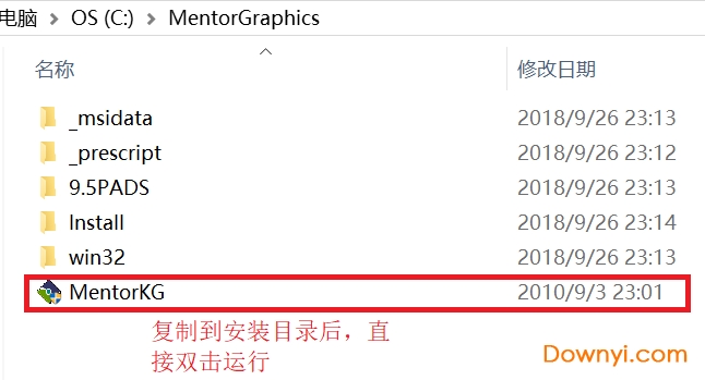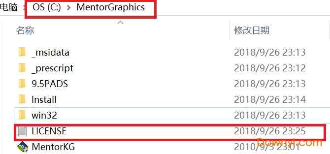 2、打開安裝包Licese文件夾,將MentorKG軟件復制到安裝目錄下,默認的安裝目錄是C:\MentorGraphics。