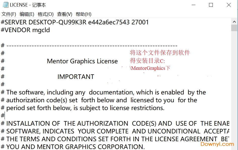 5、出現(xiàn)如下LICENSE文件,保存到軟件的安裝目錄,例如默認的是C:\MentorGraphics。