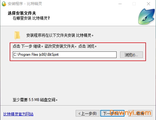 2、進(jìn)入安裝位置界面,選擇比特精靈安裝的位置,然后點(diǎn)擊“下一步”: