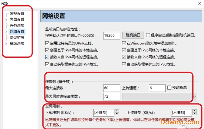 打開自己的bitcomet的“選項(xiàng)”一欄,“個(gè)人設(shè)置”→“網(wǎng)絡(luò)設(shè)置”,設(shè)置全局最大下載速度