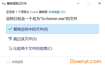 6、我們將解壓得到的crack文件夾中的“scrivener.exe”復(fù)制到軟件安裝目錄下,然后點(diǎn)擊替換