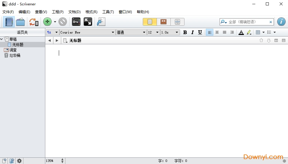 工具欄:scrivener中文版包括常用的功能快捷、視圖模式切換和項(xiàng)目搜索