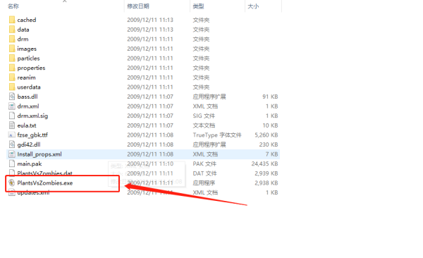 3、找到“PlantsVszombies.exe”程序,即可打開游戲
