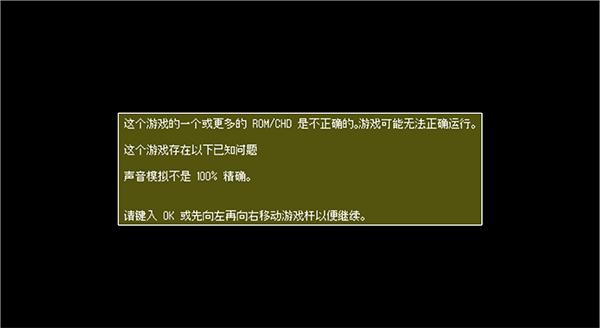 2、游戲裝載100%后,會(huì)提示"Type OK or move the joystick left then right to continue" ,根據(jù)提示先按字母O鍵再按K鍵進(jìn)入游戲