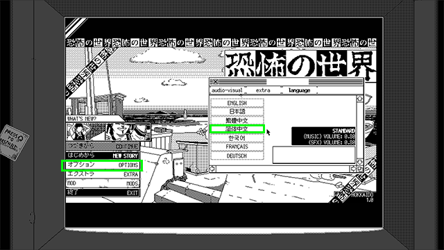 1、運行游戲后,在主界面找到并點擊“options”的選項,在右邊選擇好中文即可完成語言設置;