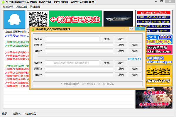 小伙伴們喜歡玩游戲嗎?那就千萬(wàn)不要錯(cuò)過(guò)這款小蘋(píng)果活動(dòng)助手最新版!作為一款可以幫助小伙伴們一鍵領(lǐng)取游戲禮包福利的電腦助手,真的是非常的好用!穿越火線、逆戰(zhàn)、QQ飛車(chē)、英雄聯(lián)盟、DNF等熱門(mén)游戲活動(dòng)福利都可以通過(guò)小蘋(píng)果活動(dòng)助手最新版一鍵領(lǐng)取,再也不用一個(gè)一個(gè)的打開(kāi)活動(dòng)頁(yè)面領(lǐng)取了,感興趣的小伙伴不妨下載試試看吧!