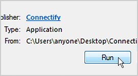 通過(guò)雙擊安裝程序的圖標(biāo)或直接從瀏覽器的下載管理器啟動(dòng),啟動(dòng)剛剛下載的connectify hotspot安裝程序,如winwin7分享的截圖: