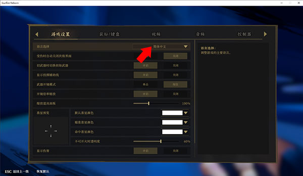 5、最后選擇簡體中文即可將游戲語言切換為簡體中文。