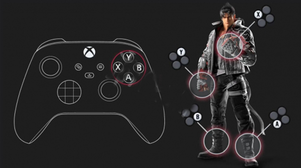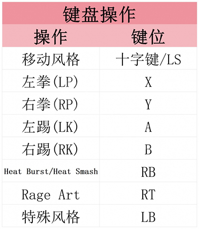 攻擊按鍵對(duì)應(yīng)角色的四肢:X(左拳);Y(右拳);A(左踢);B(右踢)。