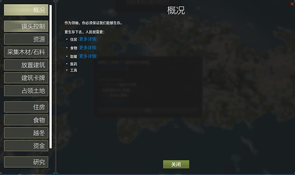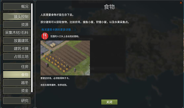 游戲玩法很簡單,玩家的任務就是帶領你的人民生存下去,生存條件就是住房、食物、取暖、醫(yī)藥、工具等;