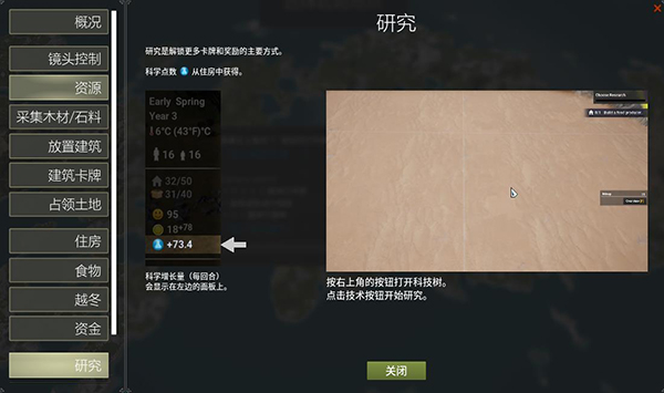 按右上角的按鈕打開科技樹,點擊技術按鈕開始研究。