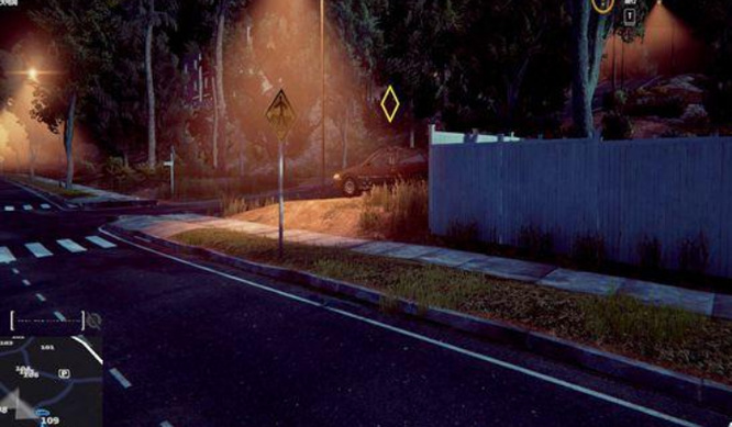 7、按提示我們回到了正馬路上, 這里也需要按提示找到我們的車離開,需要收起撬棍,不然會報警。汽車就在被盜那戶的圍欄外側(cè)。