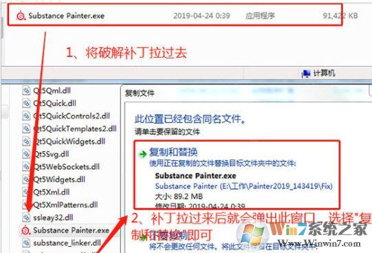 3、將破解補丁“Substance Painter.exe”復(fù)制到軟件的安裝,目錄中“C:\Program Files\Allegorithmic\Substance Painter”在自動跳出的文件復(fù)制窗口,點擊“復(fù)制和替換”即可;