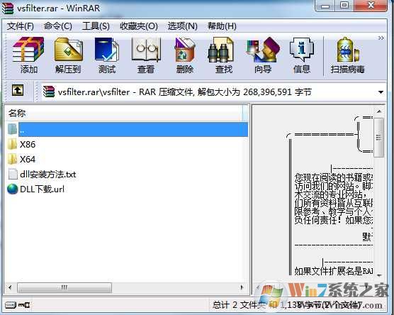 2、復(fù)制文件“vsfilter.dll”到系統(tǒng)目錄下