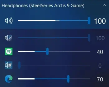 此項(xiàng)功能能讓你無(wú)需打開(kāi)`音量合成器`,直接就能分別調(diào)節(jié)不同軟件的音量大小