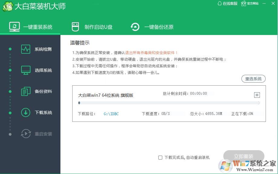 大白菜一鍵重裝系統(tǒng)軟件重裝教程: