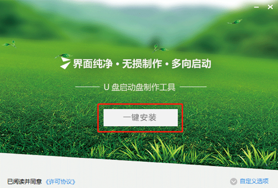 第一步:安裝云凈u盤啟動盤制作工具雙擊打開已下載好的安裝包,點擊窗口中一鍵安裝即可: