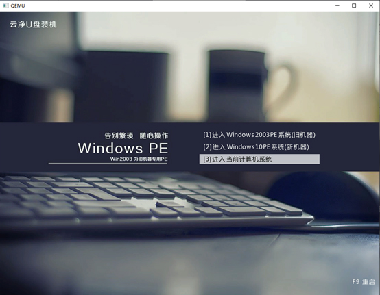 若在模擬啟動中看到如下界面,說明我們的u盤啟動盤已制作成功(注意:模擬啟動界面僅供測試使用,請勿進一步操作),最后按組合鍵“Ctrl+Alt”釋放出鼠標(biāo),點擊右上角的關(guān)閉圖標(biāo)退出模擬啟動界面: