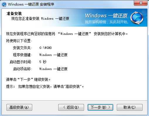 3、接下來可以直接點(diǎn)下一步,或者點(diǎn)高級(jí)安裝;