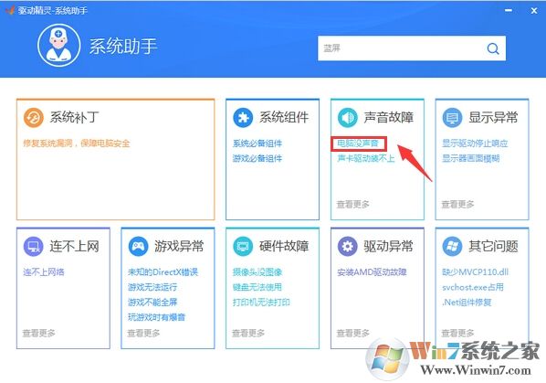 1、打開系統(tǒng)助手之后,我們可以在面板中選擇故障的類型,或是要搜索中輸入故障問題。