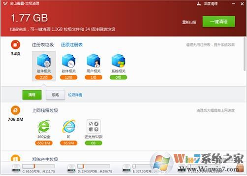 2、金山強大實力打造最好的垃圾清理功能;