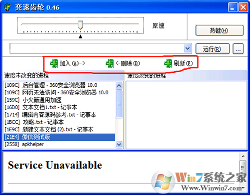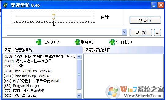 1、變速齒輪(加速齒輪)文件下載后解壓到任意文件夾,以管理員權(quán)限啟動(dòng),打開軟件,進(jìn)入主界面找到“速度未改變進(jìn)程”窗口,點(diǎn)擊加入即可出現(xiàn)在“速度改變進(jìn)程”的窗口