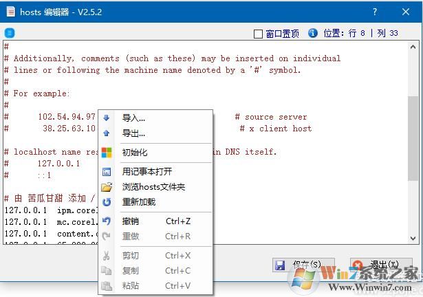 3.IP地址和網(wǎng)絡(luò)域名應(yīng)至少用一個(gè)分隔空間。在生效的條目后添加帶“#”的注釋內(nèi)容,也應(yīng)在“#”前添加至少一個(gè)分隔空間。(分隔空間一般用Tab鍵或空格鍵輸入。)