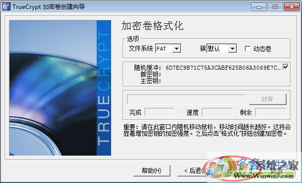 9、接下來開始格式化創(chuàng)建保密空間,如圖,點擊“格式化”按鈕即可,格式化創(chuàng)建完成之后,點擊”完成“退出創(chuàng)建保密空間向?qū)?br />