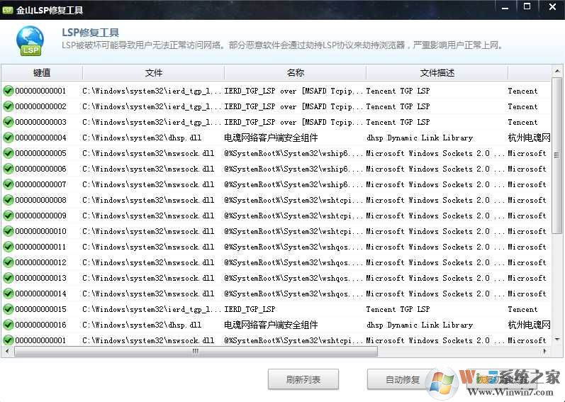 LSP是什么?LSP的中文名叫分層服務提供程序,是TCP/IP等協(xié)議的接口。瀏覽器,聊天工具等等都要通過這個接口來獲取相應的信息,LSP的功能就相當于生活中的插座。當LSP出現(xiàn)異常時,這個調(diào)用的接口就沒辦法正常工作,就會出現(xiàn)只能上qq不能打開網(wǎng)頁,巨盾攔攔不能使用或者一些網(wǎng)游加速器無法正常使用的情況