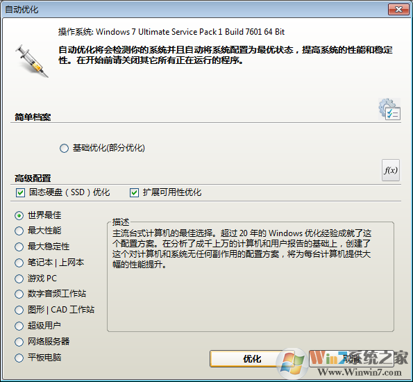 Cacheman中文版有多種預設優(yōu)化方案供大家選擇,避免對系統(tǒng)不是很了解的用戶不知道如何開始優(yōu)化,我們需要的只是點自動優(yōu)化,然后選擇一個方案就可以了。