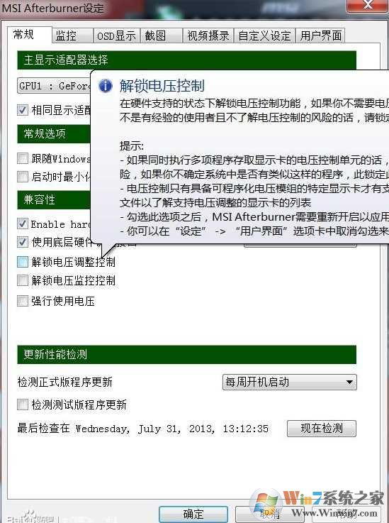 點擊齒輪圖標(biāo)進(jìn)入設(shè)置,可以根據(jù)需求解鎖電壓等功能,比較豐富。不過加壓和風(fēng)扇轉(zhuǎn)速都無法使用,這里還是建議小白不要作大死去給顯卡加壓。