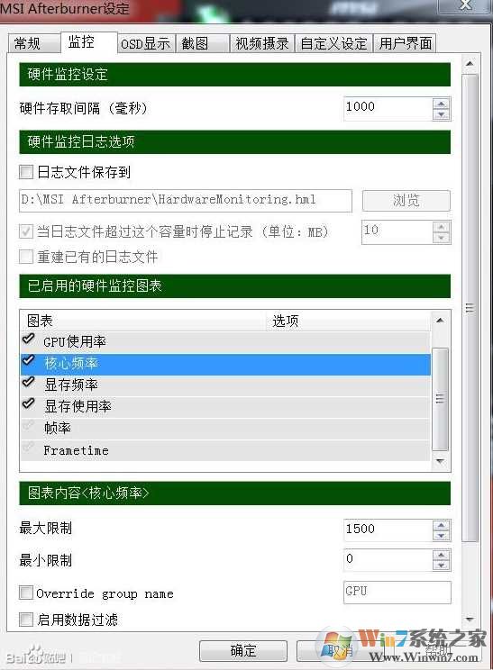 通過此MSI Afterburner可以監(jiān)控游戲中硬件的溫度 頻率 及使用率等問題。如圖片左上角那些數(shù)據(jù)。
