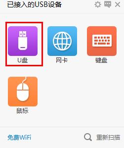 第一步:接入U盤,打開USB寶盒,點擊“U盤”圖標(biāo)