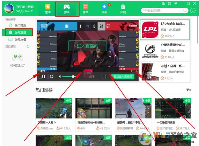 進(jìn)入軟件管家-游戲分類-選擇游戲直播即可。