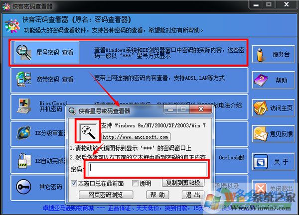 1-打開俠客密碼查看器,打開星號密碼查看工具;