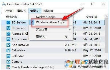 1、打開(kāi)Geek Uninstaller Pro之后,我們可以在查看這里選擇桌面應(yīng)用還是Win10 UWP應(yīng)用