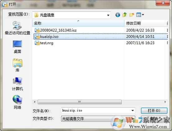 2.彈出選擇鏡像文件的對(duì)話框,選擇一個(gè)鏡像文件。