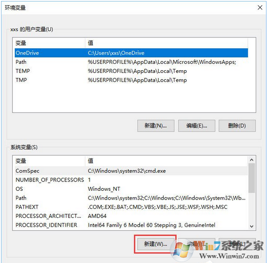 4、在彈出的頁面,系統(tǒng)變量區(qū)域,選擇“新建”。
