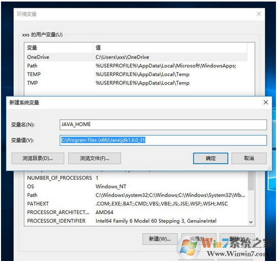 5、在新建頁面,輸入變量名“JAVA_HOME”;變量值“你的jdk的路徑(請參照下圖,找到你的安裝路徑)”,然后點擊“確定”。