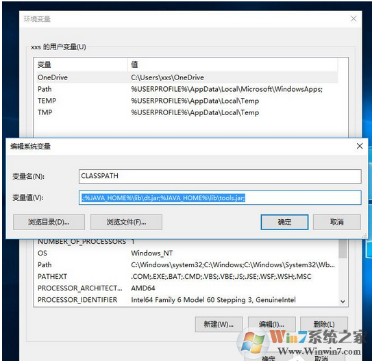 6、在系統(tǒng)變量區(qū)域,選擇“新建”,輸入變量名“CLASSPATH”;變量值:“.;%JAVA_HOME%\lib\dt.jar;%JAVA_HOME%\lib\tools.jar;”。請注意變量值中,前面的“點“和”分號”,可以直接復(fù)制此變量值。然后點擊“確定”。
