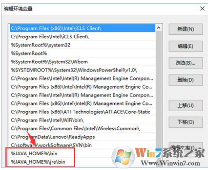 7、通過滾軸,在系統(tǒng)變量區(qū)域找到“Path”變量,并雙擊打開。點擊新建,添加如下兩行代碼(紅色選擇框中的兩行代碼)。