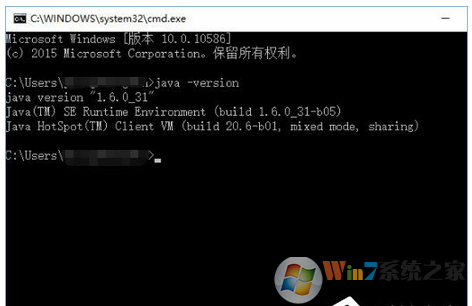 9、在命令行輸入java –version;如果能顯示java的版本信息,則表示配置成功。
