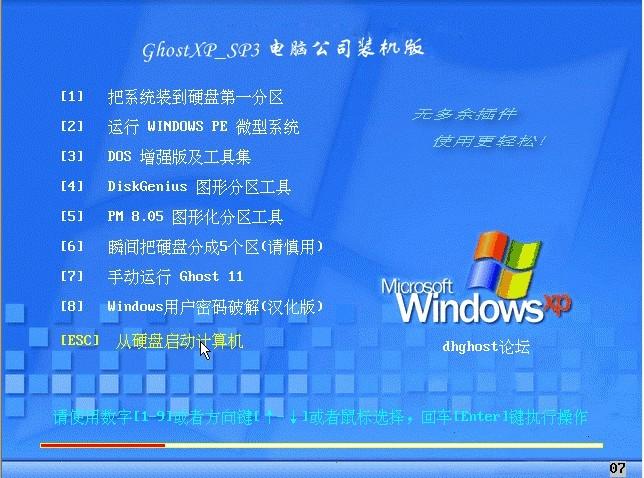 GhostXP是指使用Ghost軟件做成壓縮包的WindowsXP,俗稱克隆版XP。用克隆版的目的是節(jié)省安裝時(shí)間。本作品在采用微軟封裝部署技術(shù)的 基礎(chǔ)上,結(jié)合作者的實(shí)際工作經(jīng)驗(yàn),融合了許多實(shí)用的功能。它通過一鍵分區(qū)、一鍵裝系統(tǒng)、自動裝驅(qū)動、一鍵設(shè)定分辨率,一鍵填I(lǐng)P,一鍵Ghost備份(恢 復(fù))等一系列手段,使裝系統(tǒng)花費(fèi)的時(shí)間縮至最短,極大地提高了工作效率。